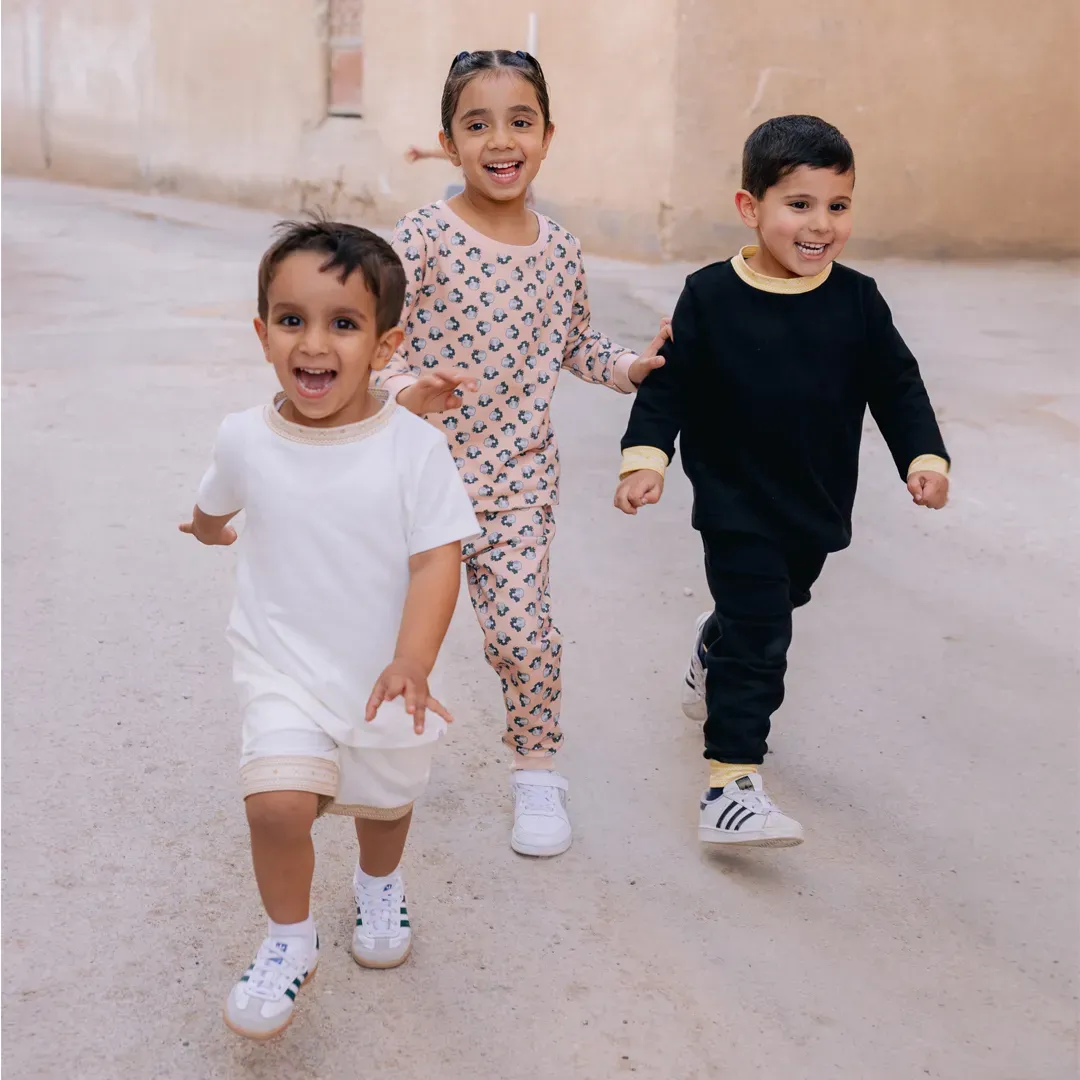 مجموعة الزري مستوحاة من خيوط الزري الفاخرة، المستخدمة في تطريز البشت السعودي. لمسات ملكية تعكس الفخامة والرُقي، مصممة لأناقة الصغار في مناسباتهم الخاصة.